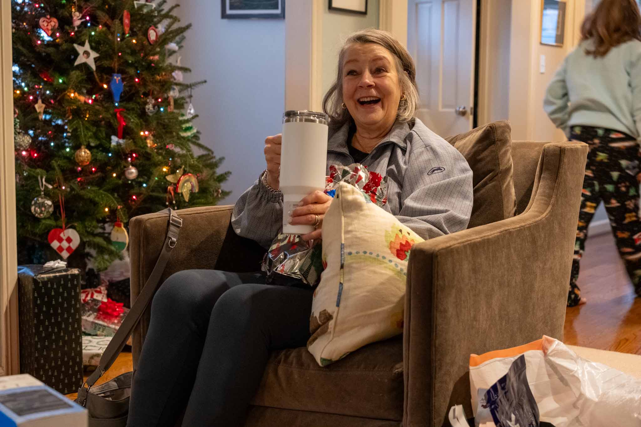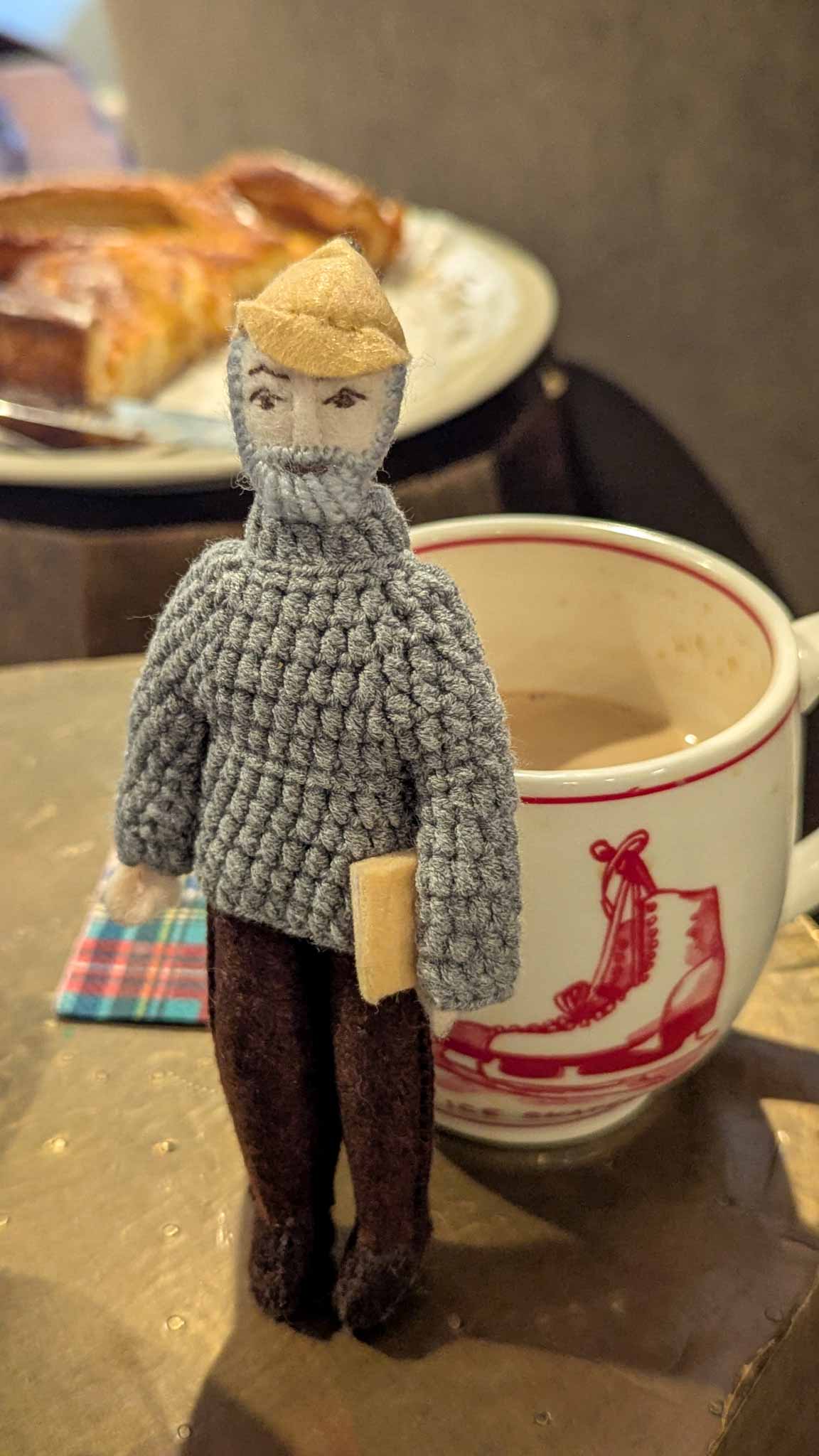 After cruising through Canada (Edmonton, Yellowknife, and Calgary), I returned to KC for Christmas. I had the privilege of visiting my brother and his family for both Thanksgiving and Christmas this year. Double holidays, double family, double pumpkin pie. This might become a yearly tradition! I was well-hosted on both occasions, and the opportunities to spend time with my nieces, Caroline and Olivia, and nephew William were very appreciated, along with my mother and step-father. My mother’s birthday is on Christmas, and Olivia helped me find a good birthday present for her, a Stanley mug. Apparently, they are very trendy amongst middle school girls, so I was assured my septuagenarian mother would love it. My mother, in turn, gifted me a funny little man made of felt (see photo, below), which might be an artistic representation of yours truly in a few more years. I would be so happy to have a sweater like he has — it looks very comfortable and warm.