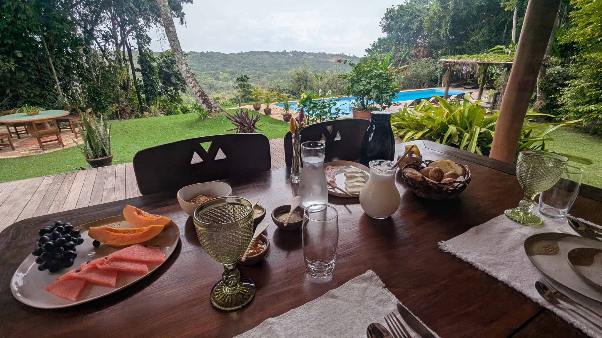 Trancoso has dozens of Pousadas (bed and breakfasts) that serve as hotels, scattered within walking distance to the main square. I stayed in a really nice bed and breakfast called Casa Baiana, which had a friendly staff willing to accommodate me as I set up my laptop and worked from the breakfast table each day. The breakfasts they served each morning were a little too delicious, consisting of four courses, along with coffee made to order. As someone who skips breakfast, I adjusted my routine to accommodate these 1,500-calorie breakfasts.